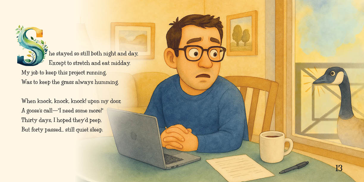 Based on a true story, How to Lay a Goose Egg is a charming, heartfelt, and funny tale about unexpected guests, gentle friendships, and the quiet magic of nature taking root in the most unlikely places.