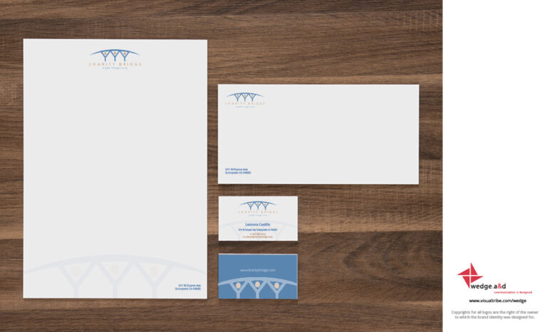 Charity Bridge connects the right business to the right charity and “bridges” the gap between them. The brand identity shows individuals holding up a bridge that connects two sides.